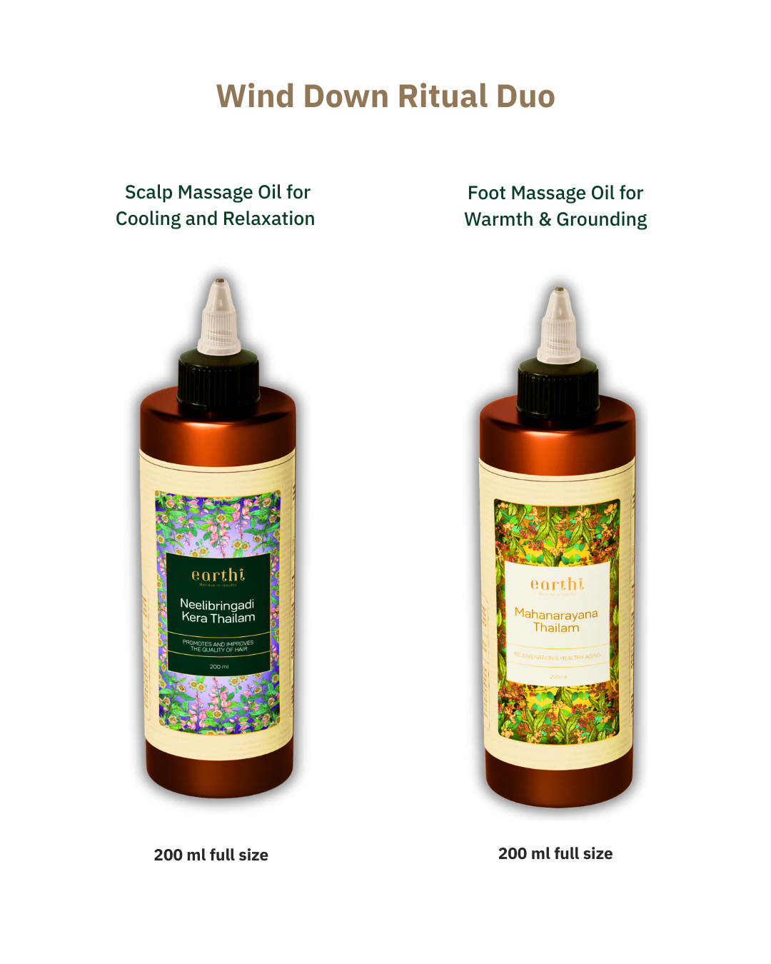 Oils: Mahanarayana Thailam (Anti-Inflammatory Recovery Oil) + Dhanwantharam Thailam (Daily Skin, Body & Haircare Oil)